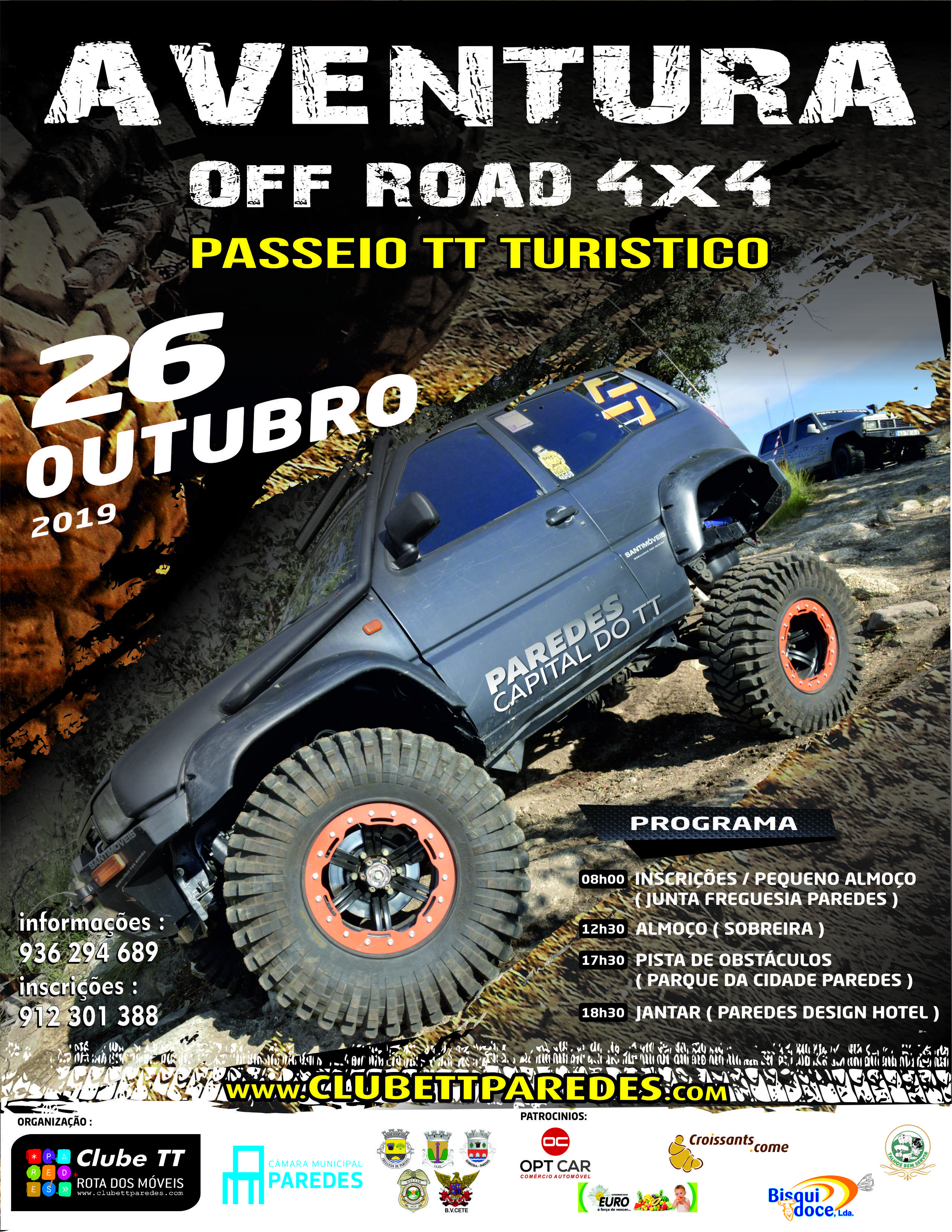 Inclui: Pequeno Almoço, Almoço, Jantar, Seguros A.C. Pessoais e R. Civil, Apoio logístico, e Lembranças, Entrada gratuita no dia da prova Campeonato Portugal Trial 4x4 de Paredes a realizar 17 Novembro de 2019.
